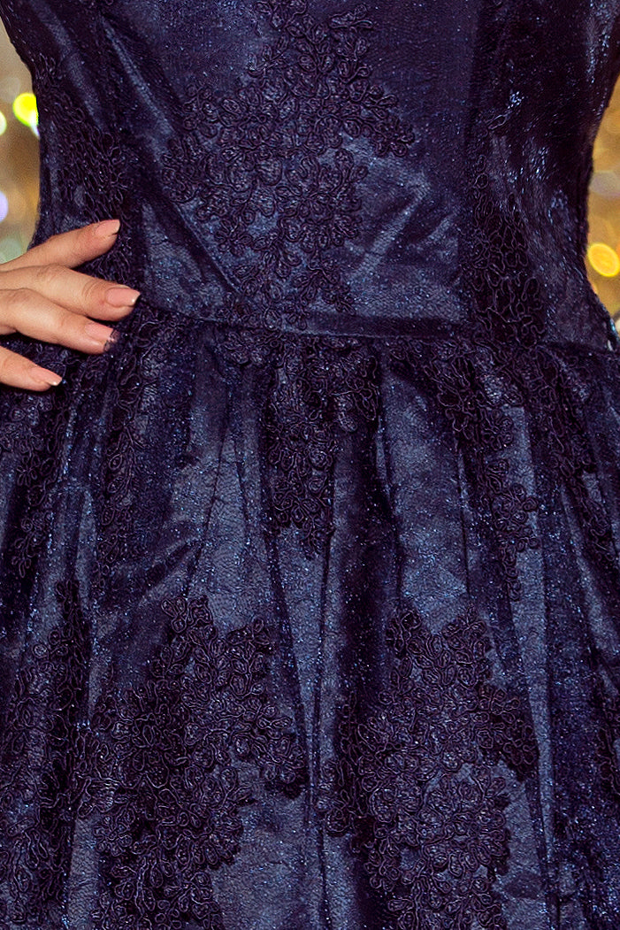 Exclusive dress made of embroidered material - navy blue. Polish product. Brand numoco.