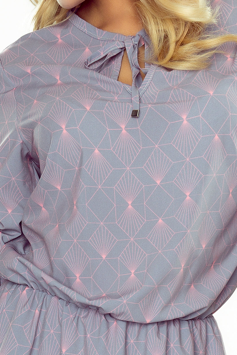 Numoco 182-2 TINA Dress with two flounces - light gray + neon patterns
