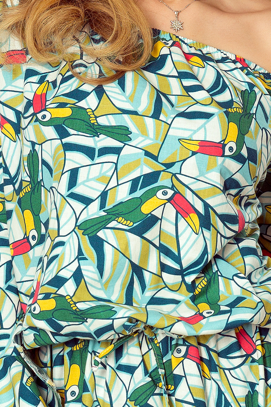 Numoco 198-4 JULIE Dress with flounces on the sleeves - green toucans