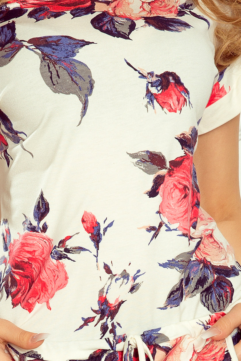 Numoco 203-1 Sports dress with short sleeves, button and flap - red flowers