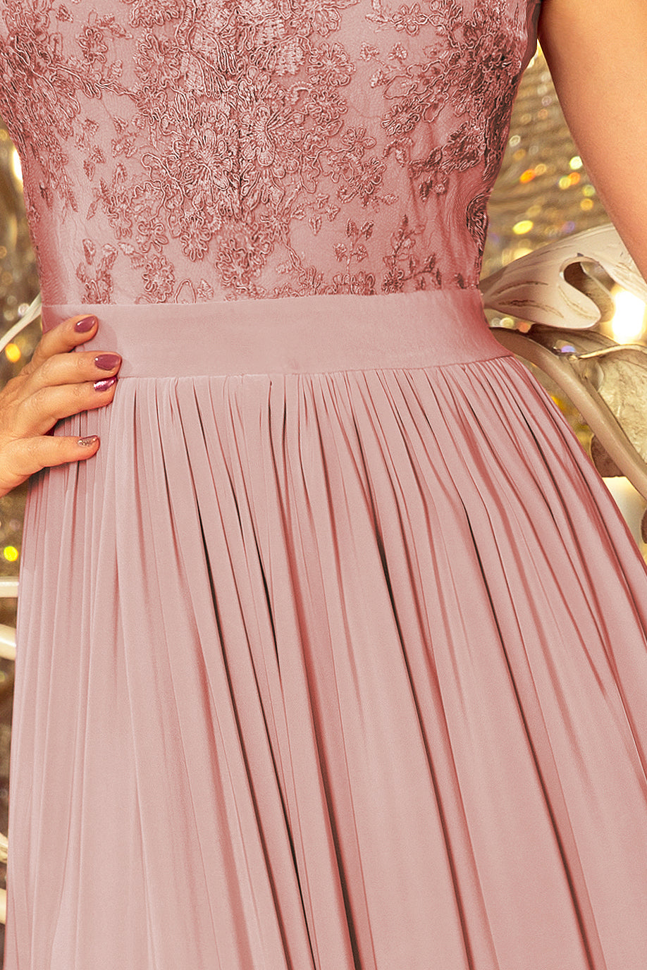 Numoco 215-5 LEA long sleeveless dress with embroidered cleavage - TAUPE