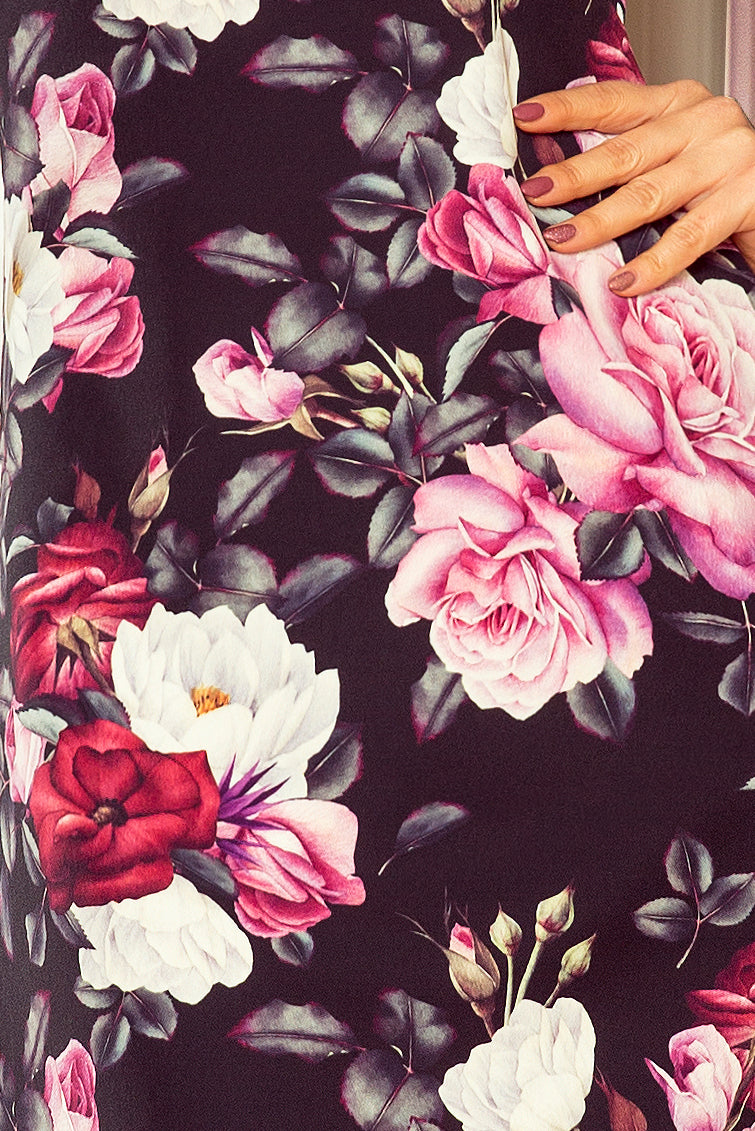 Numoco 217-5 NEVA Trapezoidal dress with flared sleeves - black + flowers