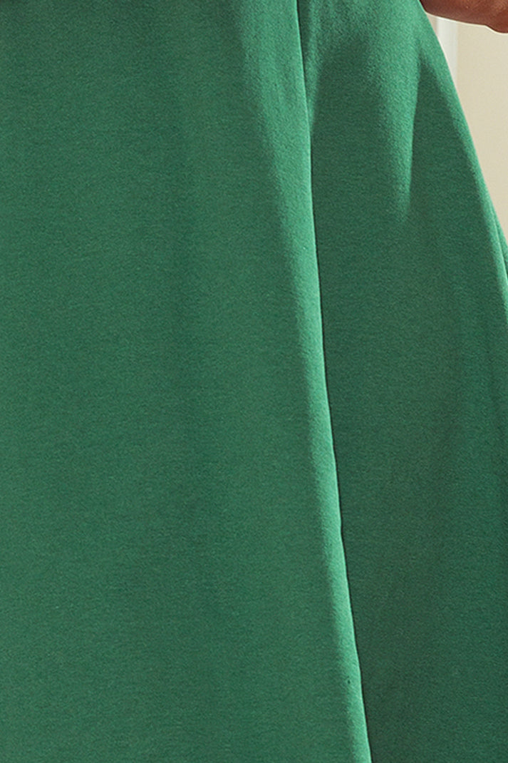 Trapezoidal Inez dress with neckline - green. Made of elastic cotton. Polish product. The numoco brand.