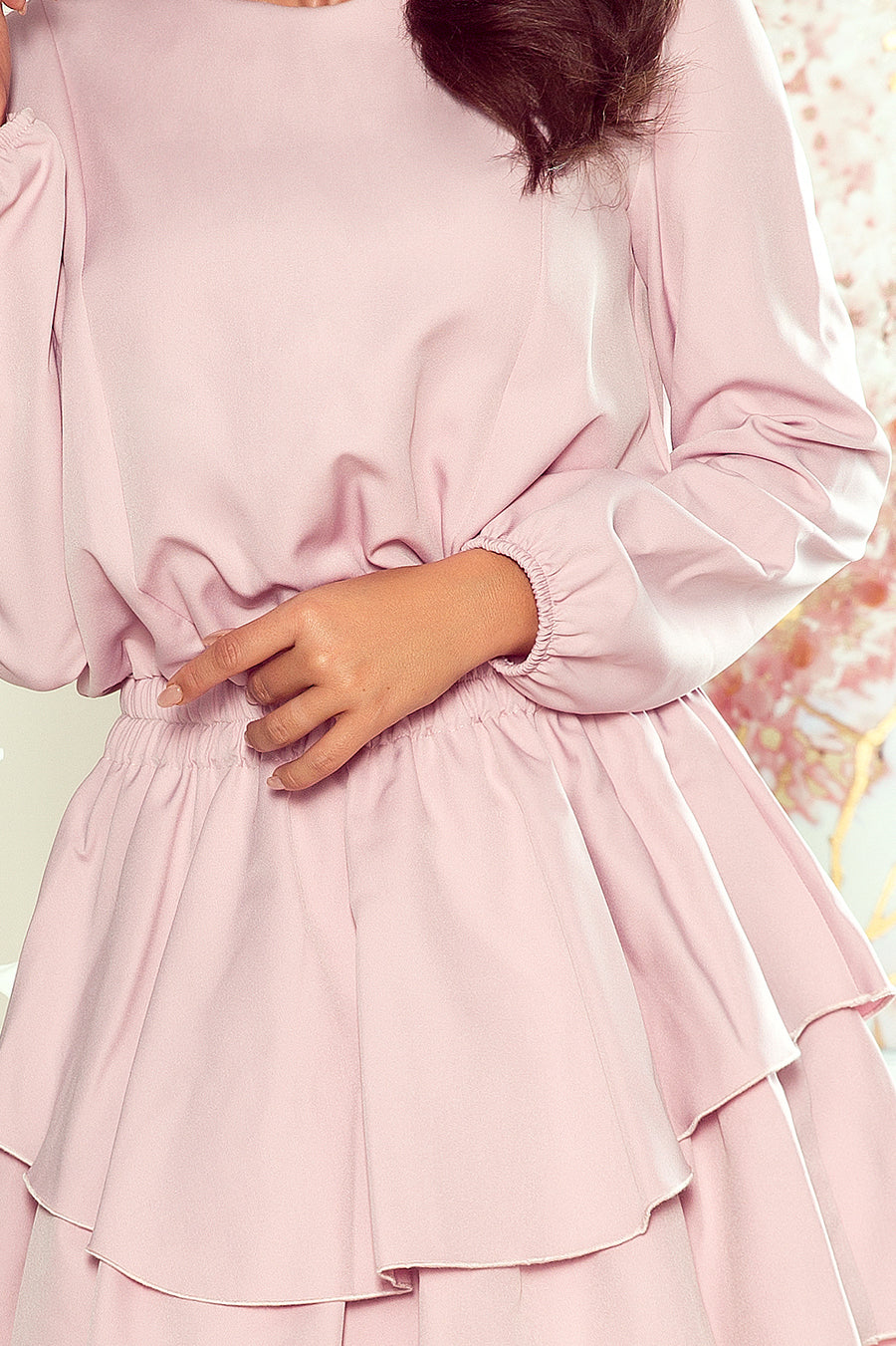 Mattie - Dress with a double skirt, wide elastic waist and a puffy sleeve - dirty pink color. The numoco brand. Polish production.