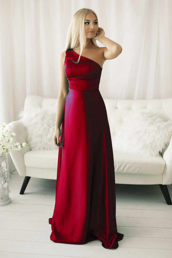 One shoulder long satin dress + bolero.