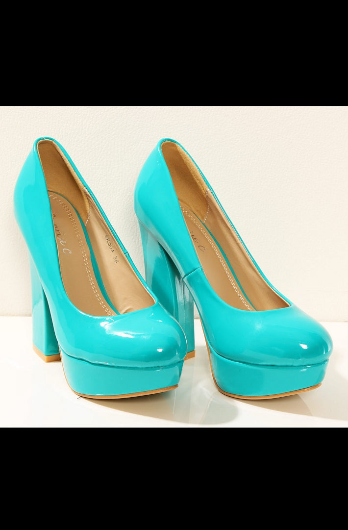 3203-3 Lacquered on a wide-heeled pumps - turquoise