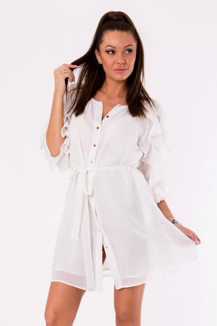 Shirt in the style Spanish, long with decorative sleeves, with buttons, with stripes