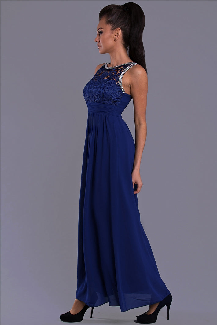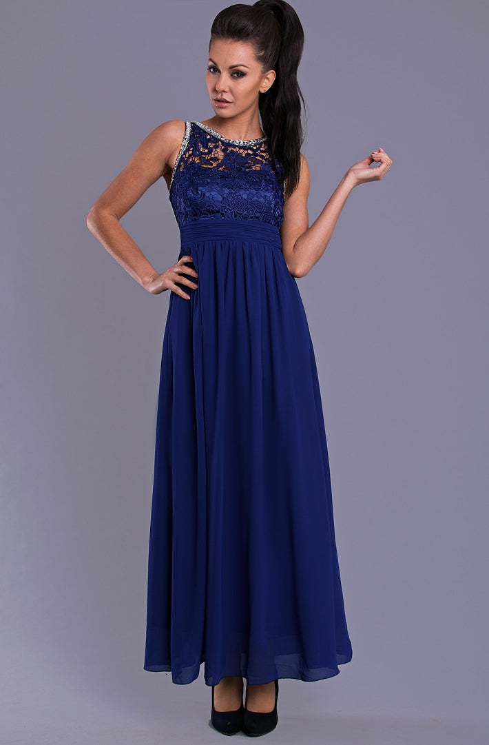 square neckline, lace neckline, neckline very fashionably decorated, sleeveless, maxi lenght, thick straps, crafted in strech fabric, pastel colours, high-quality fabric, lace detail at front, interesting connection of fabric and patterns, lightly ruffled, half lined to the waist, fashionable and decorative belt, elegance dress, lace top, flared dress, celebrity dress, binding at neckline and arms holes, lace inserts, lace hem, pull on style, empire line, loose fit, cutout on the back, back of neck with rubber bands, chemise, ball-gawn