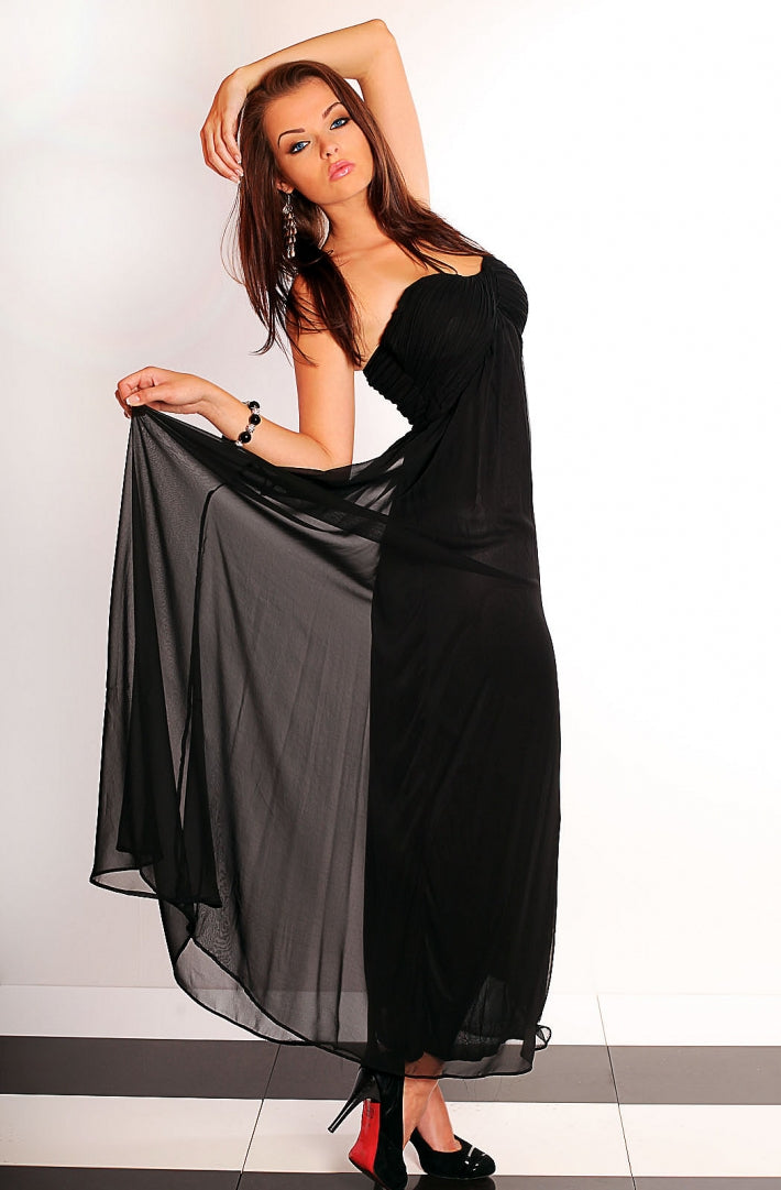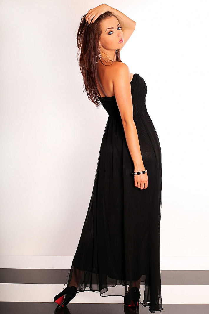 Long dress, worn on the breast, made of tiulowego material. Looks very chic.