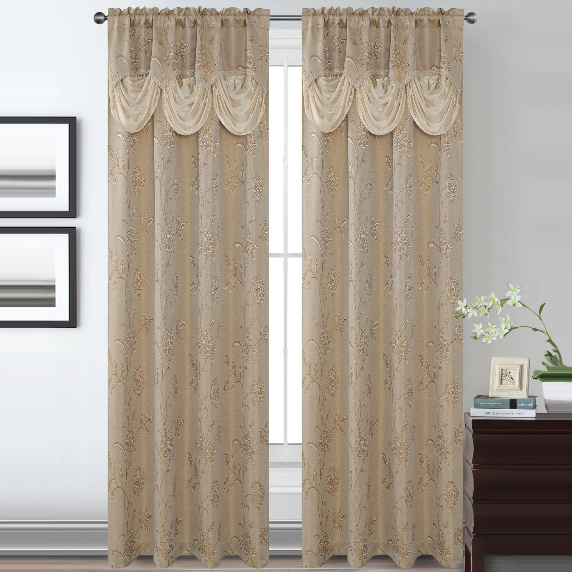 Lucia Jacquard Rod Pocket Panel with Attached Valance Set of Two. Dimensions : 108" Combined Width(Each Panel 54") by 84" Height. |